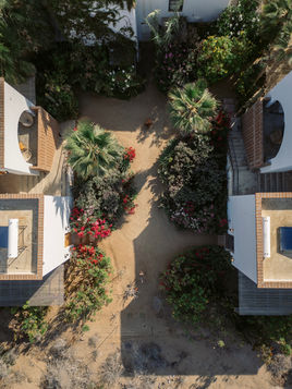 Hotel boutique, near Cerritos Beach, the hotel feels like a hidden oasis, lush gardens growing in the middle of the desert, soft ocean air, and the quiet rhythm of nature all around.Mornings begin with sunlight filtering through the trees, birdsong in the background, and coffee in hand.Days are meant for surfing, long walks on the beach, and effortless time outdoors.Evenings unfold slowly, with ocean breezes and star filled skies This is the kind of place you come for a couple of days…and end up wishing you stayed longer.Surf at one of Baja’s most iconic beachesWalk back from the ocean straight into the calm of the propertySpend afternoons between the pool, books, and good musicEnd the day under the stars, with the sound of waves in the distance